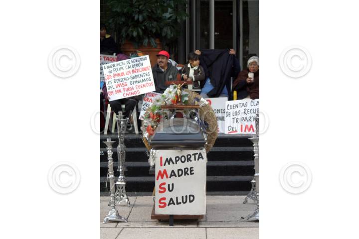 MEXICO, D.F.,28AGOSTO2007.-Se manifestaron Guanajuatences a las afueras de las oficinas del IMSS ubicadas en Avenida Reforma, ante la falta de equipo, atencion medica y medicinas en el IMSS del estado. FOTO:PEDRO MARRUFO/CUARTOSCURO.COM