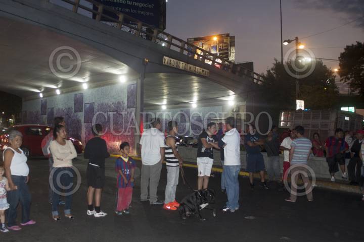 MÉXICO, D.F., 12ABRIL2014.- Vecinos de la colonia Tacubaya bloquearon la avenida Jalisco a la altura del Viaducto en la delegación Miguel Hidalgo, para exigir que se les restituyera el servicio de la luz eléctrica, ellos alegaban que desde la diez de la mañana habían reportado esta problemática a la Comisión Federal de Electricidad sin tener solución. Los afectados bloquearon esta arteria cerca de una hora y media y se replegaron hasta que llego una camioneta de la CFE a atender el problema. FOTO: MOISÉS PABLO /CUARTOSCURO.COM