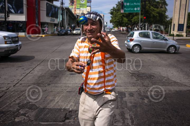 El malabarista "Malabarin" se dedican a realizar malabares para ganarse unas monedas afuera de metro Ciudad Deportiva