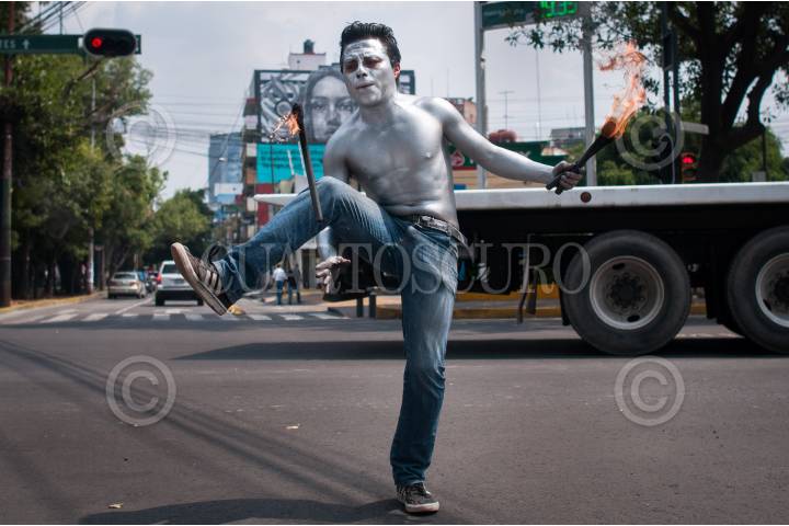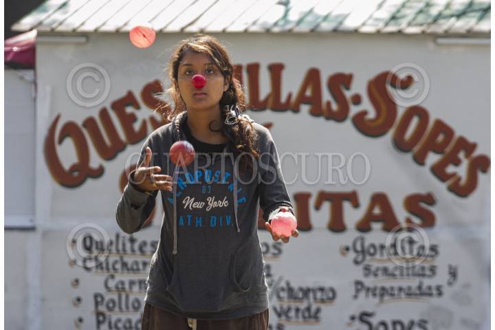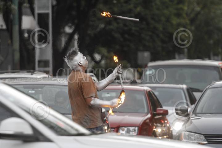 CIUDAD DE MÉXICO, 24JULIO2016.- Un malabarista se gana unas monedas en un crucero de la Ciudad de México. FOTO: ISAAC ESQUIVEL /CUARTOSCURO.COM