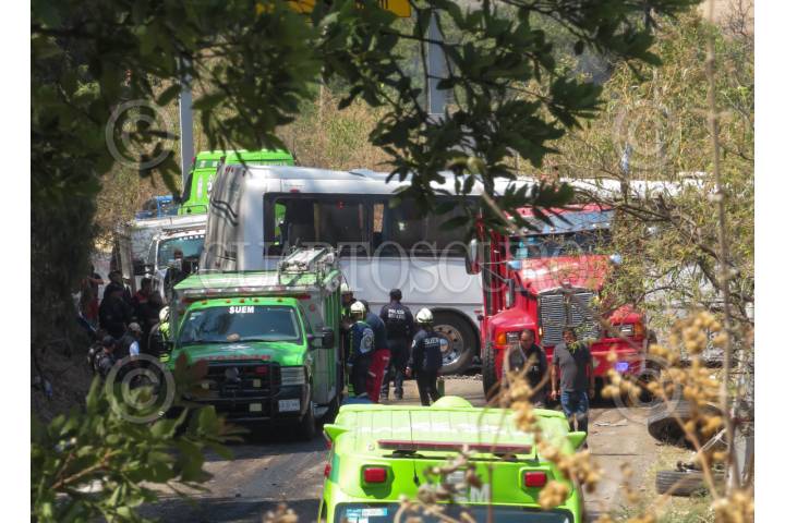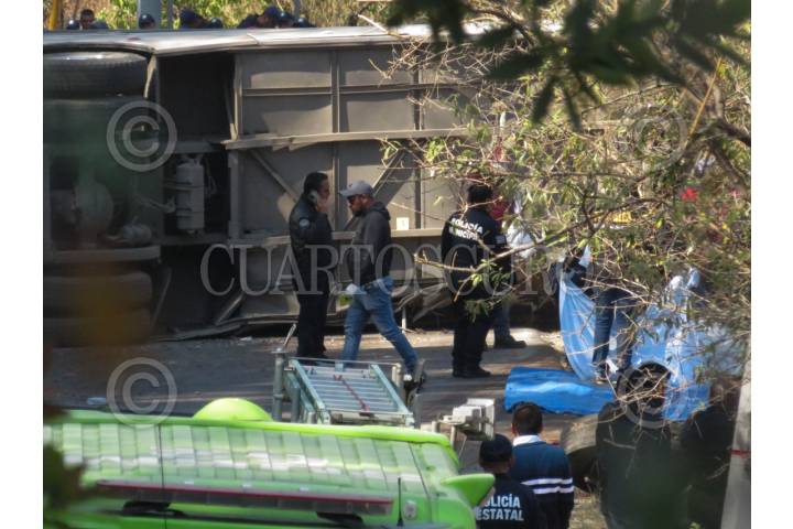 MALINALCO, ESTADO DE MÉXICO, 03ABRIL2024.- Un autobús en el que viajaban peregrinos de a Michoacán sufrió un accidente en la comunidad de San Nicolás, en Malinalco, con un saldo de cuatro personas muertas y al menos 30 más resultaron lesionadas, el autobús embistió a varios vehículos en su paso y terminó impactándose en una casa. FOTO: CRISANTA ESPINOSA AGUILAR /CUARTOSCURO.COM