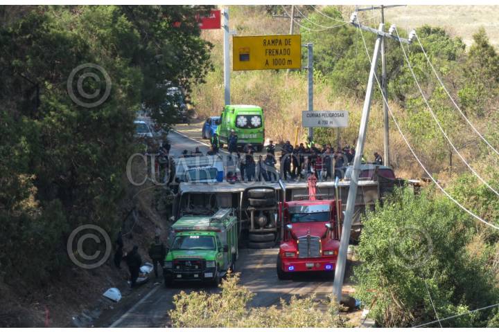 MALINALCO, ESTADO DE MÉXICO, 28ABRIL2024.- Se registra accidente de un camión de peregrinos procedente de San Luis de La Paz, Guanajuato, en la carretera Capulín-Chalma, resultando 14 personas muertas y 31 más lesionadas, cuerpos de emergencia acudieron al lugar y se encuentra cerrada la carretera. FOTO: CRISANTA ESPINOSA AGUILAR /CUARTOSCURO.COM