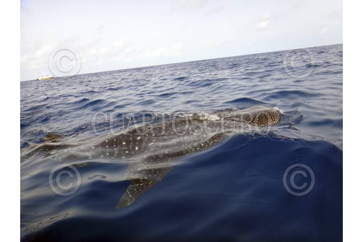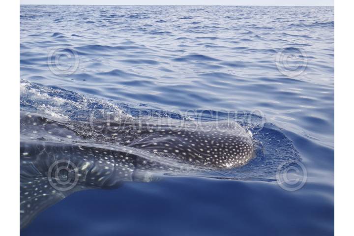 CANCÚN, QUINTANA ROO, 05AGOSTO2013.- El tiburón ballena es el pez más grande que existe en el planeta, puede llegar a medir hasta 18 metros de longitud. Esta especie prefiere el agua superficial cálida, o aquellas áreas donde hay brotes de agua más fría rica en nutrientes, ya que esas condiciones favorecen el crecimiento del plancton del cual se alimenta.Las manchas que presentan los tiburones ballena han generado diversos nombres locales como el de dominó o pez dama, aludiendo al juego de mesa. Cada individuo presenta un patrón único de manchas que permite su identificación individual, es como su huella digital ya que no se modifica con el crecimiento. Es posible que también tengan una función de atractivo social. FOTO: ELIZABETH RUÍZ / CUARTOSCURO.COM