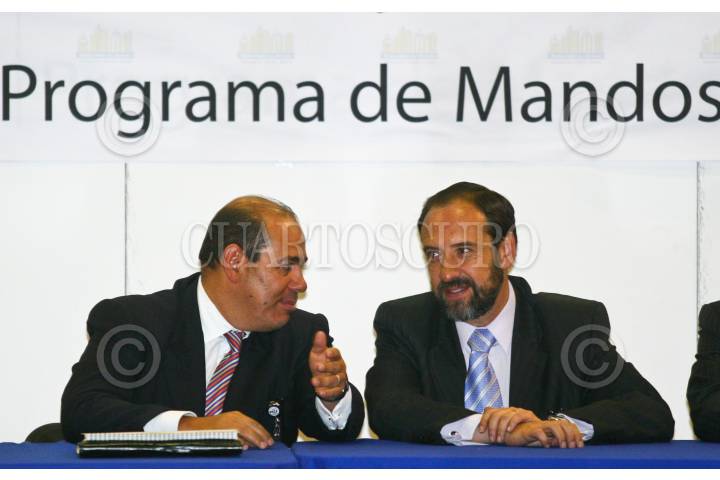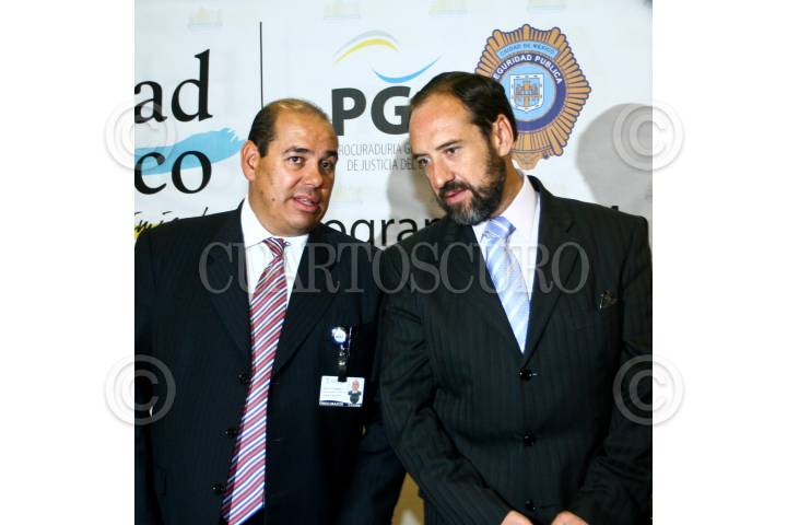 MÉXICO, D.F 20MAYO2008.- El procurador capitalino Rodolfo Félix Cárdenas y el delegado German de la Garza, durante la presentación de la Unipol en la delegación Benito Juárez. FOTO: ISAAC ESQUIVEL/CUARTOSCURO.COM