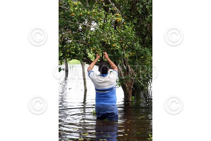 HUIMANGUILLO, TABASCO, 10NOVIEMBRE2009.- Un poblador en el ejido Blasillo es encontrado cortando frutas en un árbol de mandarina para poderse alimentar; es posible que sea lo único que ingiera ya que según él mismo revela que no ha recibido ayuda de ningún orden de gobierno. FOTO: MARCO POLO GUZMÁN HERNÁNDEZ/CUARTOSCURO.COM