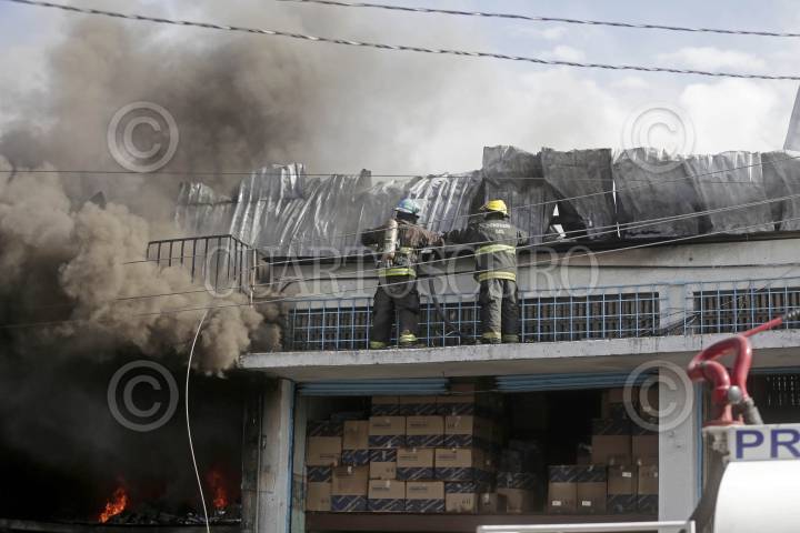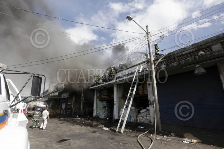 GUADALAJARA, JALISCO. 12ABRIL2016.- Esta tarde se registro un fuerte incendio en una bodega de plásticos del mercado de Abastos ubicada en las calles de Nopal y Mandarina, en dicho incidente participaron personal de Protección Civil y Bomberos del Estado, así como de bomberos de diversas corporaciones, como Guadalajara, Zapopan, Tlaquepaque, Tonalá y cuerpos médicos como Cruz Roja y Cruz Verde. FOTO : CUARTOSCURO.COM