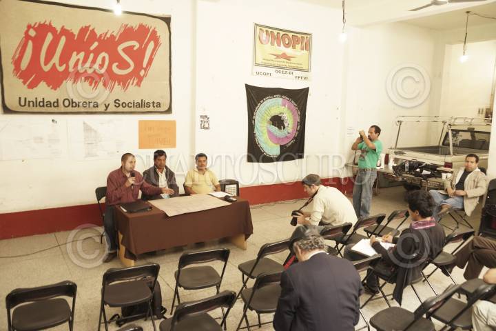 MÉXICO, D.F, 28MAYO2013.- Ejidatarios de San Sebastián Bachajón en Chiapas, y miembros de distintas organizaciones dieron una conferencia de prensa en la que denuncian injusticias y despojos de los tres niveles de gobierno. Ricardo Lagunes, asesor jurídico, Mariano Moreno Guzmán y Domingo Pérez Álvaro, declaran que estos gobiernos corruptos despojan a los pueblos indígenas y también acusan al mismo gobierno que mandaron asesinar a su compañero de lucha Juan Vázquez Guzmán el 24 de abril de este año. FOTO: ALEJANDRO NEYRA /CUARTOSCURO.COM