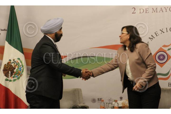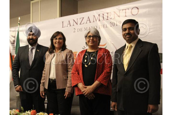 CIUDAD DE MÉXICO, 02MAYO2019.- Sr. Inder Pal Singh, presidente de la IMBC; Rocio Nahle, Secretaria de Energía; Graciela Muñoz Colín, Secretaria de economía y Sr. Muktesh K. Pardeshi embajador de la India en México, durante el lanzamiento de la Cámara Empresarial India-México en el Hotel Hyatt de Polanco. FOTO: ROGELIO MORALES /CUARTOSCURO.COM