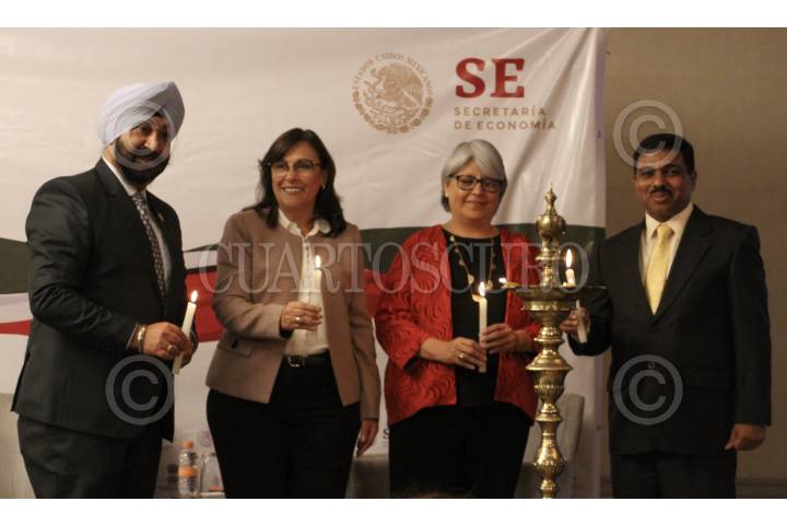 CIUDAD DE MÉXICO, 02MAYO2019.- Sr. Inder Pal Singh, presidente de la IMBC; Rocio Nahle, Secretaria de Energía; Graciela Muñoz Colín, Secretaria de economía y Sr. Muktesh K. Pardeshi embajador de la India en México, durante el tradicional encendido de la vela por el lanzamiento de la Cámara Empresarial India-México en el Hotel Hyatt de Polanco. FOTO: ROGELIO MORALES /CUARTOSCURO.COM