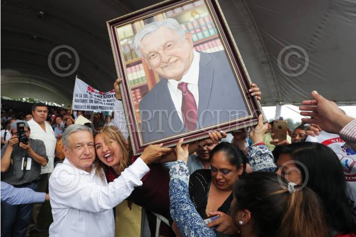 APIZACO, TLAXCALA, 31MAYO2019.- Andrés Manuel López Obrador, Presidente de México, durante la entrega de tarjetas de los Programas Integrales de Bienestar. El Jefe del Ejecutivo Federal entregó apoyos a beneficiarios de los programas Pensión para el Bienestar de Adultos Mayores y Pensión para el Bienestar de las Personas con Discapacidad y el de Jóvenes Construyendo el Futuro. Estuvo acompañado de María Luisa Albores, secretaria de Bienestar, y de Marco Antonio Mena, gobernador de Tlaxcala. FOTO: PRESIDENCIA /CUARTOSCURO.COM