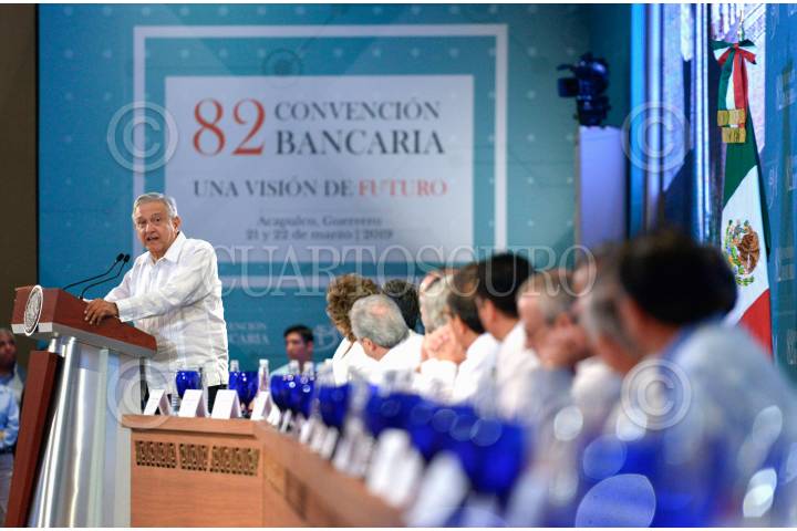 ACAPULCO, GUERRERO, 22MARZO2019.- Andrés Manuel Lopez Obrador, Presidente de México, durante la clausura de la 82 Convención Bancaria, en donde se trataron temas como mantener el crecimiento de la economía y el incremento de la cobertura de bancos en todo el país. FOTO: CUARTOSCURO.COM