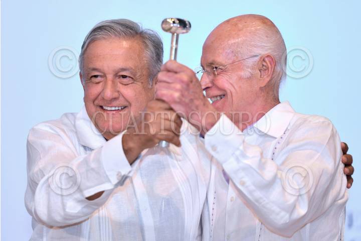ACAPULCO, GUERRERO, 22MARZO2019.- Andrés Manuel Lopez Obrador, Presidente de México y Luis Niño de Rivera, Presidente entrante de la Asociación de Bancos de México, durante la clausura de la 82 Convención Bancaria. FOTO: CUARTOSCURO.COM