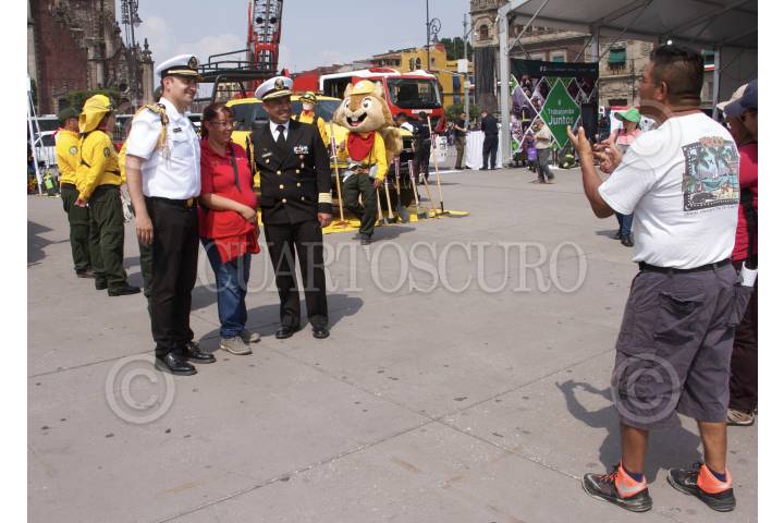 CIUDAD DE MÉXICO, 20SEPTIEMBRE2019.- Brigadista de Protección Civil, durante la exposición para conmemorar el " Día Nacional de Protección Civil y los sismos de 1985 y 2017", en la Plaza de la Construcción. FOTO: ROGELIO MORALES /CUARTOSCURO.COM