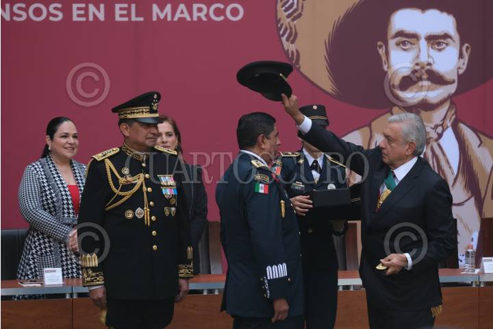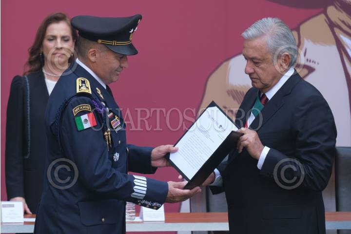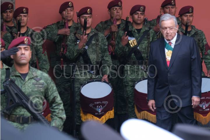CIUDAD DE MÉXICO, 20NOVIEMBRE2019.- Andrés Manuel López Obrador, presidente de México, entregó las Condecoraciones y Ascensos a las Fuerzas Armadas, en el marco del 109 Aniversario de la Revolución Mexicana, el cual se realizó en el Patio central de Palacio Nacional. FOTO: GRACIELA LÓPEZ /CUARTOSCURO.COM