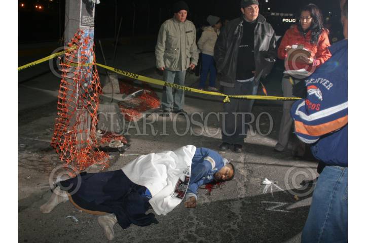 MÉXICO, D.F., 27NOVIEMBRE2009.- Un muerto y un lesionado es el saldo del choque de una motocicleta contra un poste de señalización sobre la avenida Tecnológico y la calle Palma en la colonia del Bosque en la delegación Gustavo A. Madero. El hombre que pierde la vida en el luhgar es Michel Guzmán Ruíz de 25 años de edad. Ambos tripulantes no portaban el casco de protección. FOTO: LUZ ACEVEDO/CUARTOSCURO.COM
