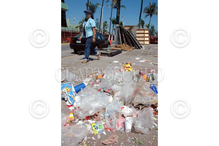 VERACRUZ, VERACRUZ, 25FEBRERO2009.- Después de finalizados los desfiles de carnaval se puede observar el gran basurero en que se convierten los cerca de cuatro kilómetros y medio del boulevard Manuel Ávila Camacho, autoridades municipales indican que son doscientas toneladas de basura las que se acumularon en estos cinco días. FOTO: JOSÉ CANDELARIO/CUARTOSCURO.COM