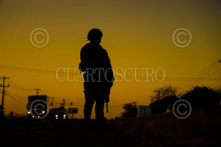 Un soldado del Ejército dirige el tránsito en una escena de crimen donde fue dejado el cadáver maniatado de un hombre al norte de la capital de Morelos.