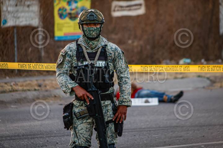 CUERNAVACA, MORELOS, 07JULIO2024.- Elementos de la Guardia Nacional, del Ejercito y policía del municipio participan en el acordonamiento de una escena de crimen en el poniente de la capital de Morelos. En la madrugada de este día, fue dejado el cadáver de un hombre con las manos atadas y con impactos de arma de fuego en la calle Tabachín de la colonia Nueva Santa María. A lado del cuerpo sin vida los homicidas dejaron un mensaje escrito en una cartulina. FOTO: MARGARITO PÉREZ RETANA/CUARTOSCURO.COM