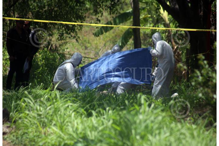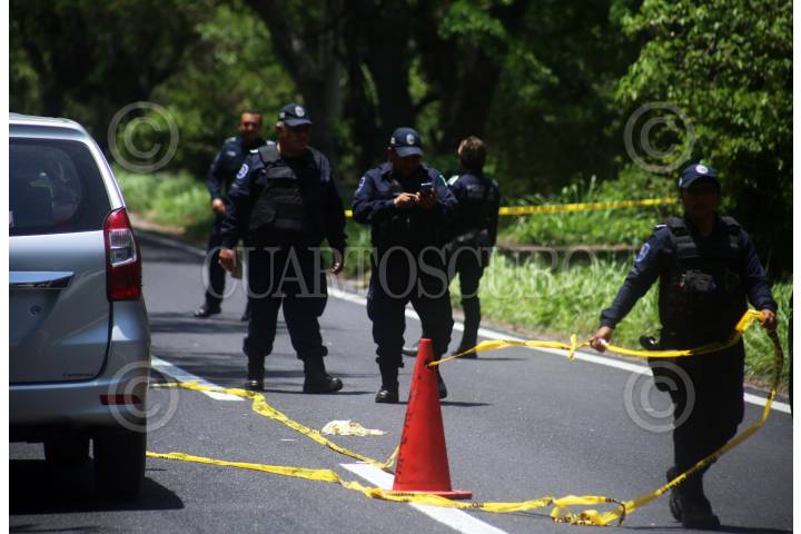 YAUTEPEC, MORELOS, 10JUNIO2019.- El cadáver de un hombre maniatado fue dejado a la orilla de la carretera federal a Cuautla, al final del Cañón de Lobos. El reporte policiaco se recibió minutos antes del mediodía, la víctima vestía pants azul bajado hasta los tobillos, playera clara, usaba calcetines azules y tenía una bolsa cubriendo la cabeza. Policías de Morelos resguardaron la escena del crimen para que después investigadores y peritos de la Fiscalía levantaran las evidencias. El servicio Médico Forense finalmente traslado el cadáver al anfiteatro para esperar su reconocimiento. FOTO: MARGARITO PÉREZ RETANA /CUARTOSCURO.COM