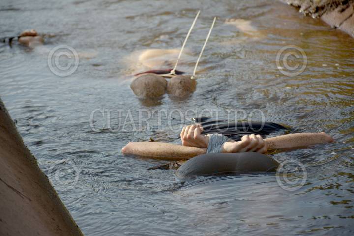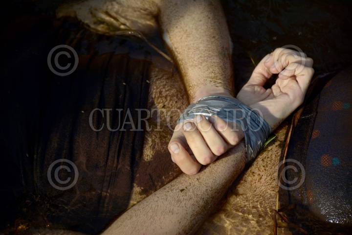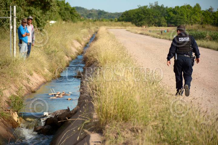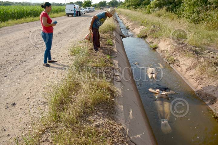 CULIACÁN, SINALOA, 05NOVIEMBRE2019.- Dos jóvenes aparecieron asesinados a tiros y semidesnudos está mañana, dentro de un canal de riesgo de la comisaría de La Presita, al norte de la ciudad. Las víctimas tienen entre 25 y 30 años, son de complexión delgada y estatura mediana. Los jóvenes solo visten truzas, tienen los pies, las manos y el rostro encintados, y uno de ellos tiene un cincho en las piernas y otro la cabeza envuelta en una bolsa. Aparentemente las dos personas presentan impactos de bala en la cabeza. Las corporaciones policiacas informaron que el hecho fue reportado alrededor de las 07:30 horas, por vecinos de La Presita, ubicado a la salida norte de la ciudad. El reporte indicó que dentro del canal de riego que corre paralelo al camino que va Las Brisas, se hallaban los cadáveres de dos personas. Las víctimas estaban dentro del agua, uno de ellos boca a arriba y otro boca abajo. Hasta el momento se desconoce la identidad de las víctimas. Los cuerpos fueron trasladados al Servicio Médico Forense en espera de que sean identificados. FOTO: JUAN CARLOS CRUZ /CUARTOSCURO.COM