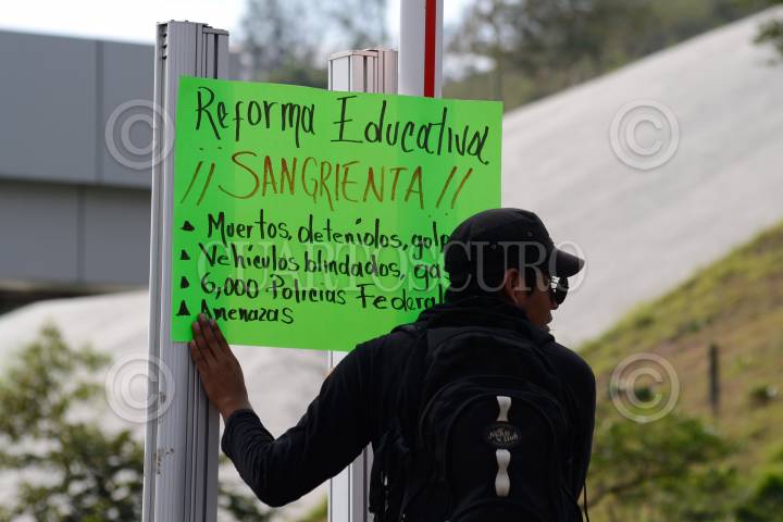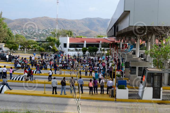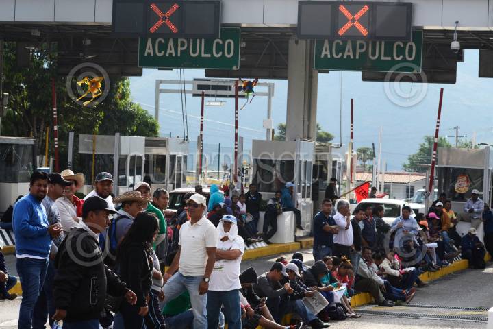 CHILPANCINGO, GUERRERO, 11DICIEMBRE 2015- Profesores de la Coordinadora Estatal de trabajadores de la Educación en Guerrero (Ceteg) encabezados por el Secretario General Ramos Reyes Guerrero a las 7:40 de la mañana tomaron la caseta de cobro de peaje de la Autopista del Sol dieron paso libre a los usuarios a cambio de una cooperación voluntaria, esta acción es en rechazo a la valuación magisterial y en apoyo a los normalistas detenidos en Michoacán. FOTO: JOSÉ I. HERNÁNDEZ /CUARTOSCURO.COM