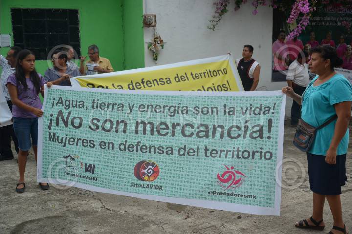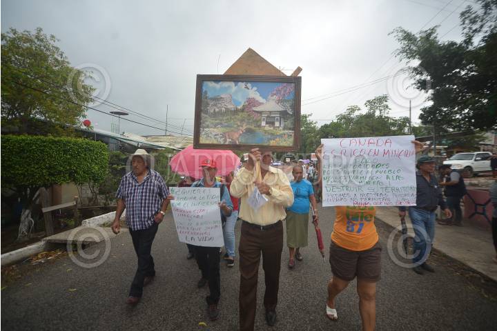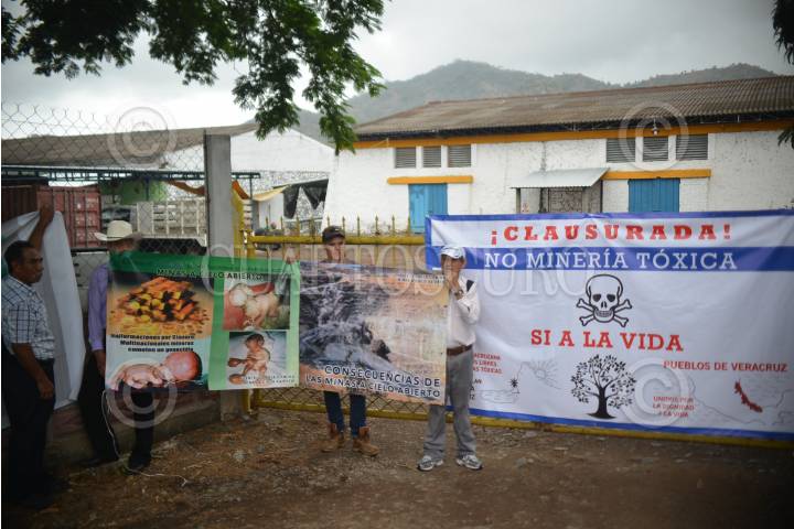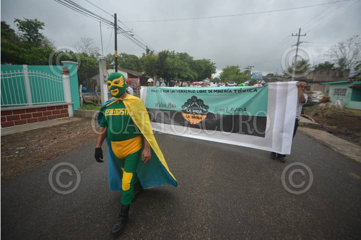 TINAJITAS, VERACRUZ, 27ABRIL2018.- Habitantes de Actopan y otros municipios, ademas de organizaciones sociales; marcharon por las calles de la localidad exigiendo frenar los proyectos mineros en su región. Los protestantes clausuraron simbolicamente las bodegas de la Minera Galvan. FOTO: ALBERTO ROA /CUARTOSCURO.COM