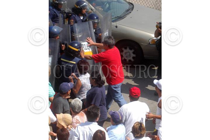 MÉXICO, D.F., 06ABRIL2009.- Elementos pertenecientes al cuerpo de Granaderos retiraron a decenas de personas que bloqueaban la vialidad en Circuito Interior casi al cruce con Ferrocarril Hidalgo, los vecinos de la colonia Gómez Farias se manifestaban por la falta de agua FOTO: LUIS CARBAYO: CUARTOSCURO.COM