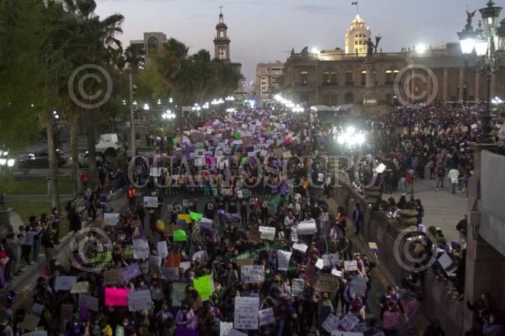 Miles de mujeres salieron a las calles del centro de la ciudad de Monterrey para conmemorar el Día Internacional de la Mujer con una marcha que salió desde la Explanada de los Héroes.