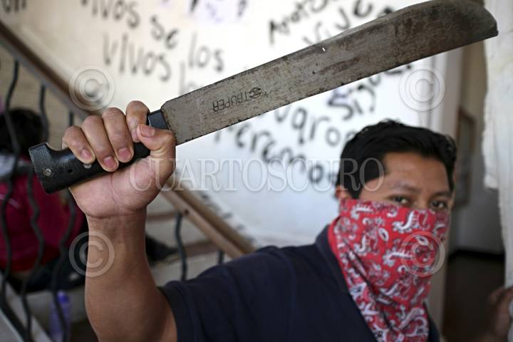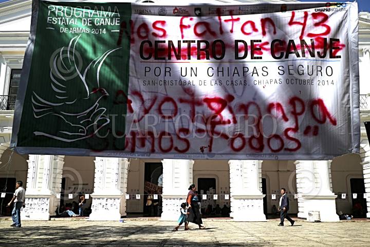 SAN CRISTOBAL DE LAS CASAS, CHIAPAS, 28OCTUBRE2014.-Estudiantes normalistas toman de nueva cuenta el palacio municipal de San Cristobal de las Casas en apoyo a los normalistas desaparecidos en Iguala, Guerrero. FOTO: ELIZABETH RUIZ /CUARTOSCURO.COM