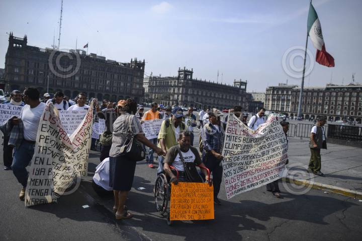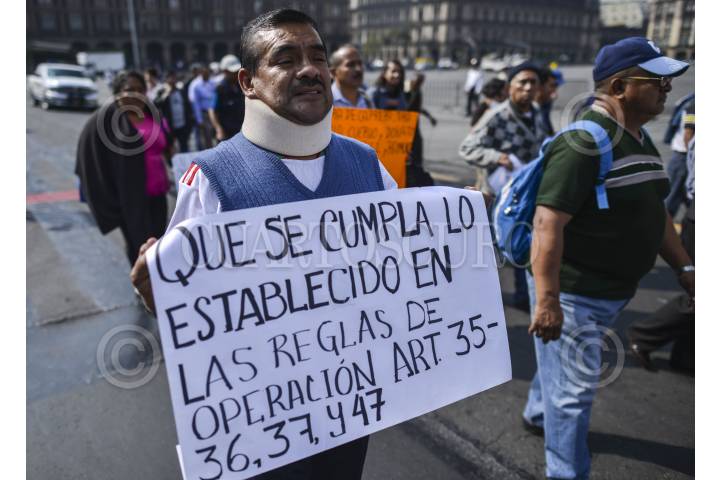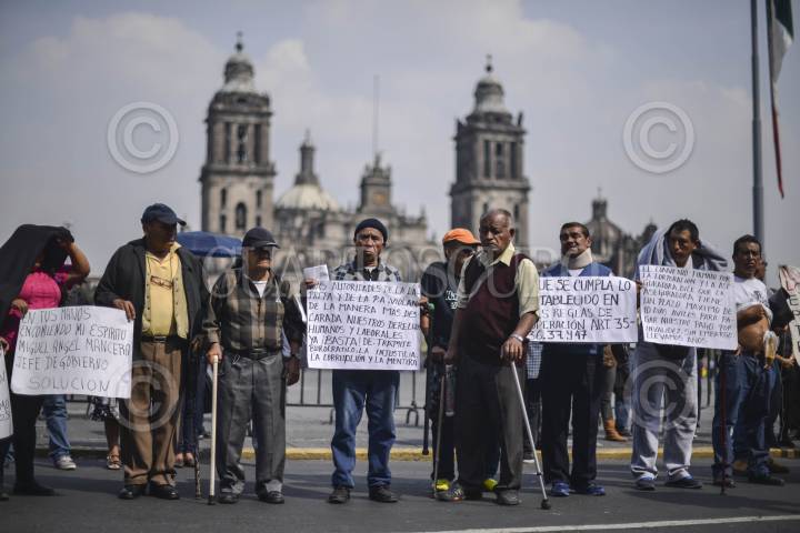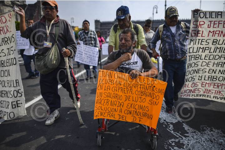 MÉXICO, D.F., 17NOVIEMBRE2015.- Policías auxiliares del Distrito Federal en activo, jubilados, pensionados e incapacitados, se manifestaron con una marcha en el circuito del Zócalo para finalizar frente a la sede del GDF en inconformidad de los tratos, arbitrariedades e injusticias que dicen se han cometido por parte de las autoridades y dirección de la corporación, en especial por Jorge Luis Basaldua, Director General de la Policía auxiliar. FOTO: ADOLFO VLADIMIR /CUARTOSCURO.COM