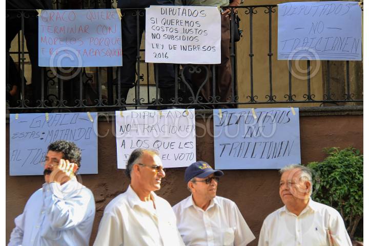 CUERNAVACA, MORELOS, 27NOVIEMBRE2015.- Un grupo de transportistas cerraron la calle Galeana para exigir a los diputados pagos justos en el cambio de placas, renovación de concesión, título de concesión, tarjetón y servicios públicos así como altas y bajas. El bloqueo ocurrió frente al Congreso del Estado. FOTO: PATRICIA MORALES /CUARTOSCURO.COM