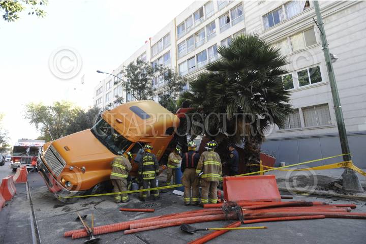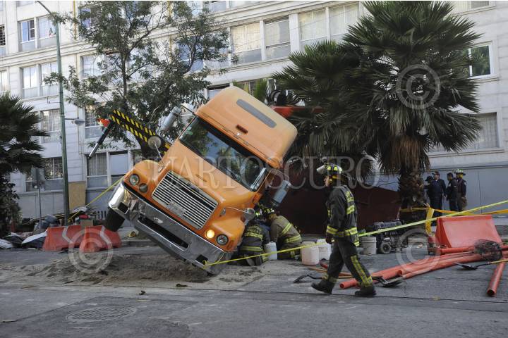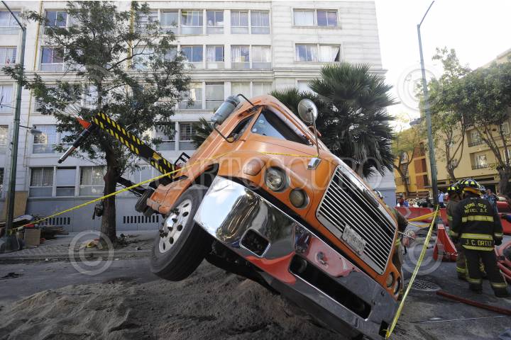 MÉXICO, D.F., 05ENERO2016.- Una grúa que maniobraba una pieza grande de concreto se ladeo sobre la calle de Morelos y Enrico MartÌnez, en la colonia Centro. FOTO: ARMANDO MONROY /CUARTOSCURO.COM