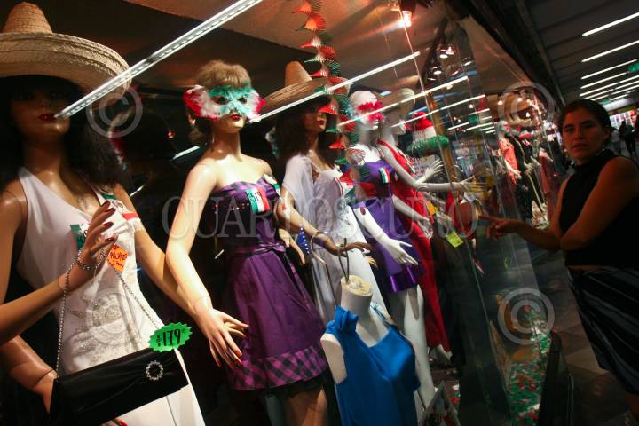 MÉXICO, D.F., 28AGOSTO2010.- Los festejos por el Bicentenario de la Independencia llegaron a las tiendas de ropa, donde maniquíes son adornados con los colores de la bandera nacional. FOTO: ISAAC ESQUIVEL/CUARTOSCURO.COM
