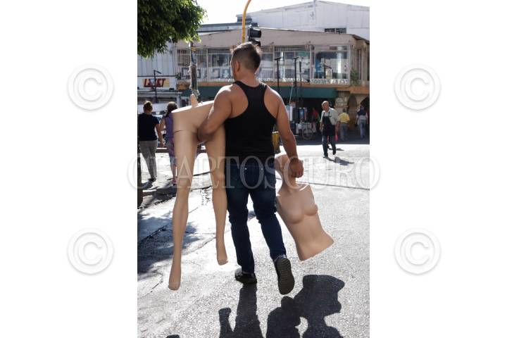 CUERNAVACA, MORELOS, 03DICIEMBRE2019.- Un joven lleva en sus manos dos piezas que forman un maniquí en la calle Guerrero. FOTO: MARGARITO PÉREZ RETANA /CUARTOSCURO.COM