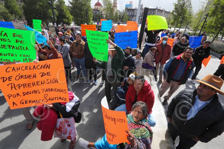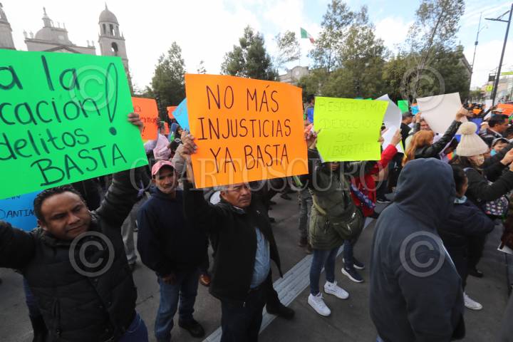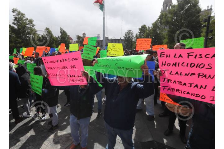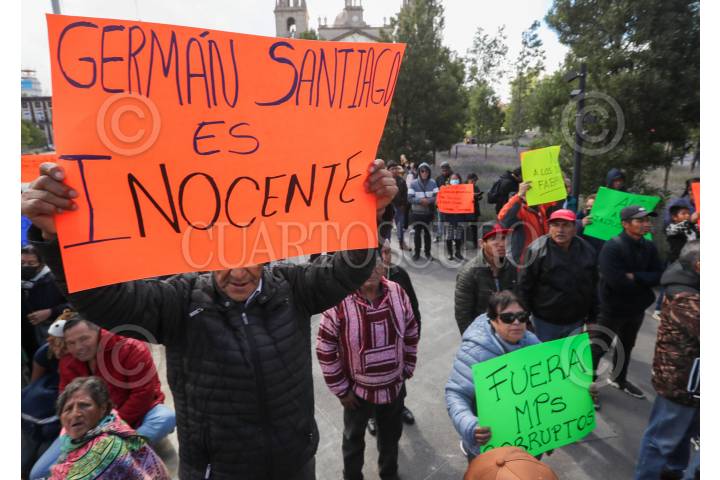 TOLUCA, ESTADO DE MÉXICO, 22NOVIEMBRE2023.- Vecinos de Naucalpan se manifestaron en Palacio de Gobierno exigiendo la intervención de la Gobernadora Delfina Gómez Álvarez en el caso del representante campesino Germán Santiago Gutiérrez quien fue detenido por el delito de homicidio, denuncian que este delito fue fabricado por la FGJEM. FOTO: CRISANTA ESPINOSA AGUILAR /CUARTOSCURO.COM