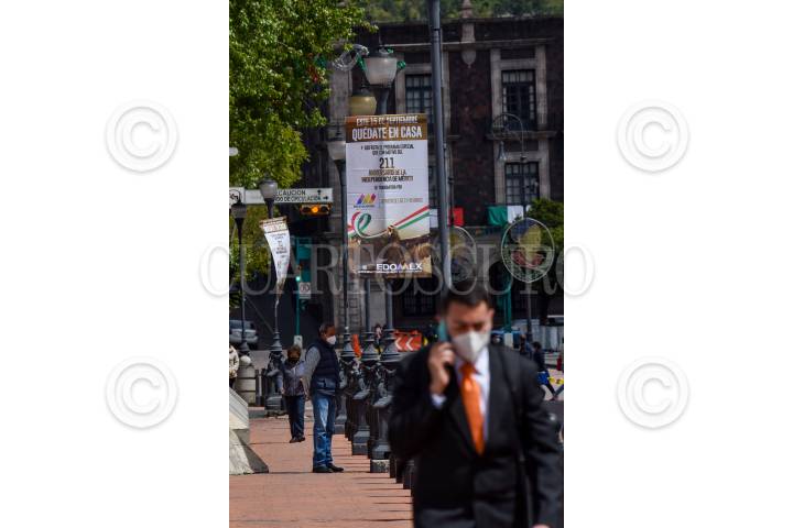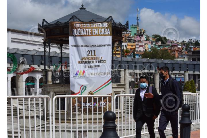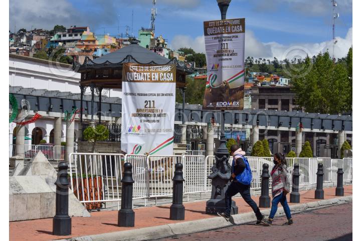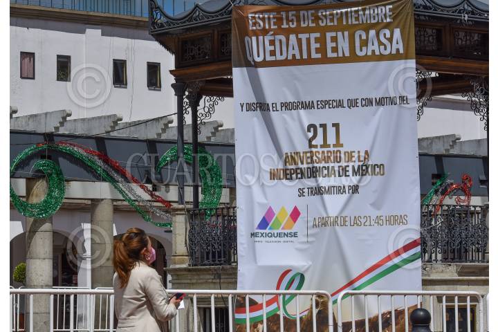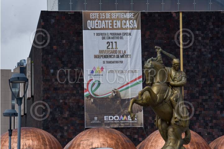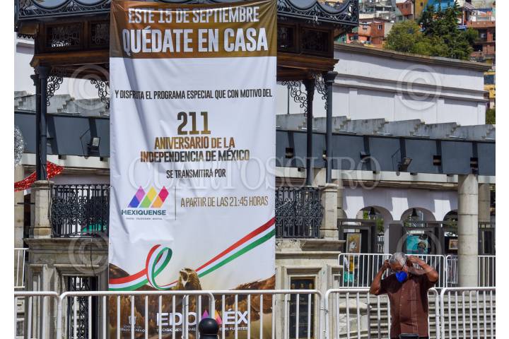 Con mantas autoridades del Estado de México invitan a la población a quedarse en casa y disfrutar de un programa especial por el 211 Aniversario de la Independencia de México que será transmitido por Televisión.