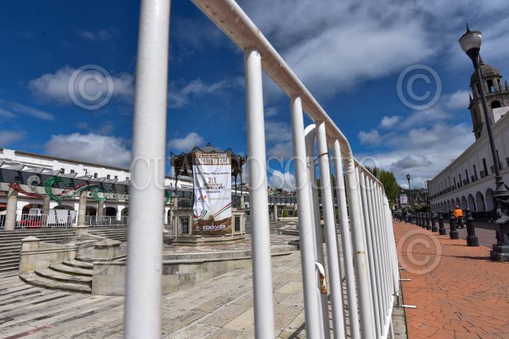 Continúa Semáforo Rojo en el Estado de México, con mantas se exhorta a la población a seguirse cuidando durante la contingencia por COVID-19.