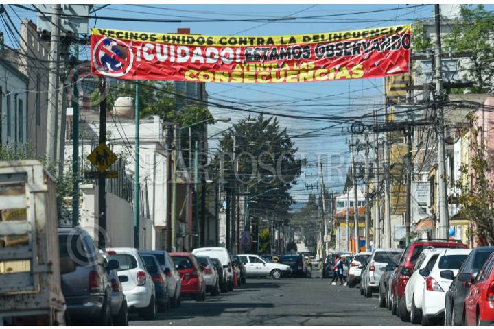 Vecinos unidos contra la delincuencia en la colonia Vértice en Toluca colocaron una manta advirtiendo a los delincuentes.