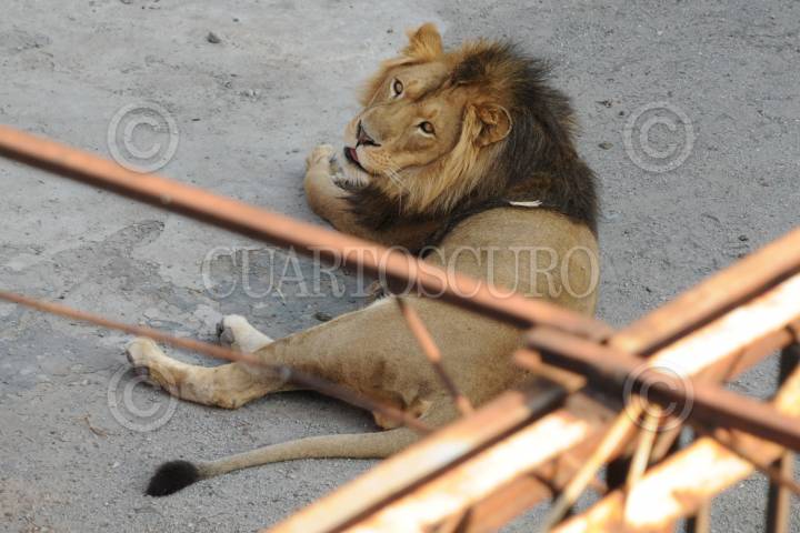 TULPETLAC, ECATEPEC, 07JUNIO2010.- Elementos de la policía Municipal en coordinación con personal de la Procuraduría Federal de Protección al Ambiente (PROFEPA). Acudieron al número 43 de la calle Morelos Norte en la colonia Santa Maria Tulpetlac en atención a una denuncia ciudadana, a verificar los permisos en este domicilio para poder mantener en cautiverio y como mascota a un León Africano, mismo que se encuentra en el patio de este domicilio. FOTO: LUIS CARBAYO/CUARTOSCURO.COM