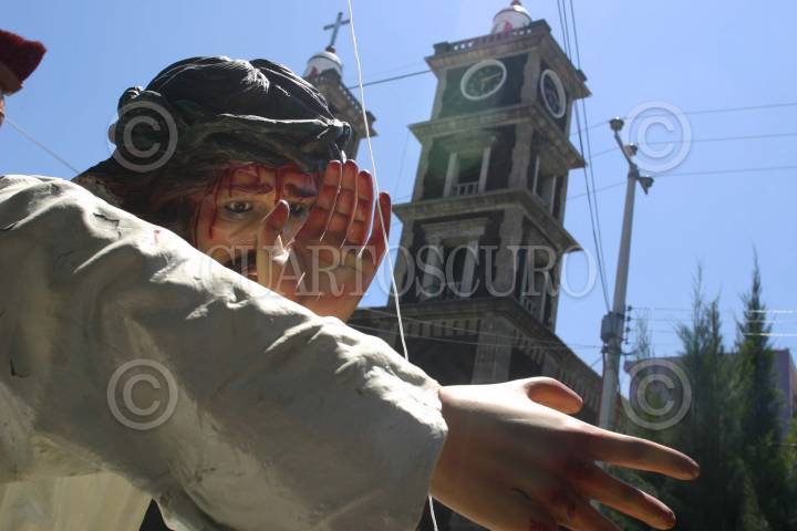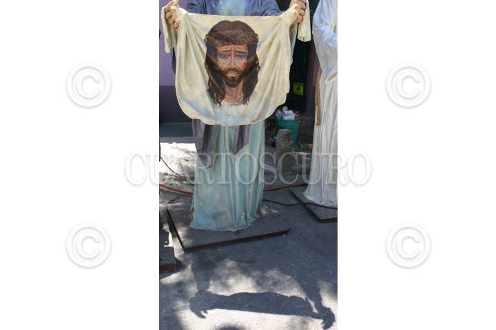 MEXICO, D.F., 24MARZO2005.- Las figuras gigantes que sirven para la representaciónn del vía crucis este viernes santos, ya se encuentran listas en la Iglesia de la Lupita en la delegación Venustiano Carranza. FOTO: Moisés Pablo/CUARTOSCURO.COM