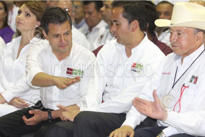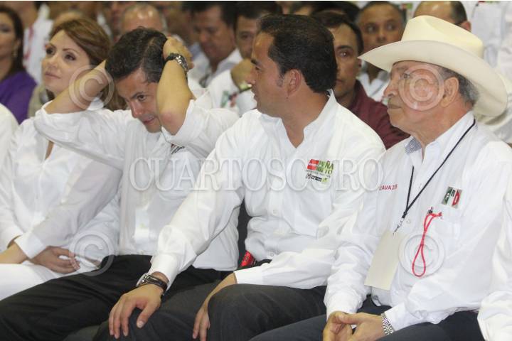 TAMPICO, TAMAULIPAS, 06JUNIO2012.- Enrique Peña Nieto, candidato de la coalición Compromiso Por México, se reunió con Manuel Cavazos, exgobernador del estado y candidato al senado, durante el encuentro con estructuras del PRi en Tamaulipas. FOTO: SAÚL LÓPEZ /CUARTOSCURO.COM