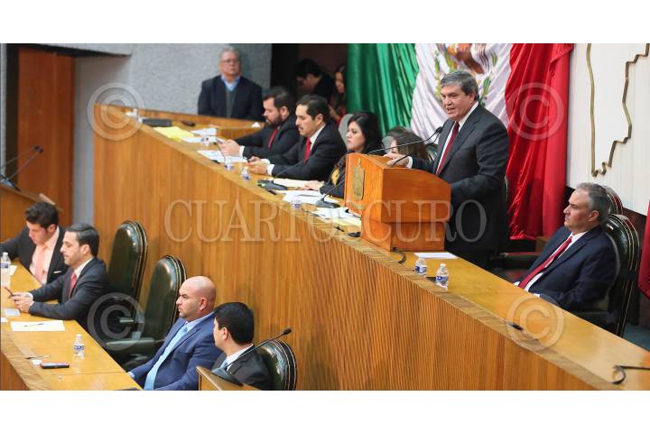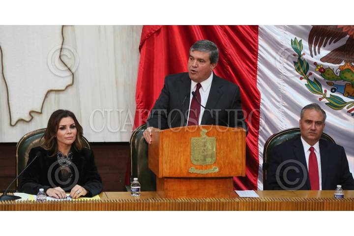 MONTERREY, NUEVO LEÓN, 01ENERO2018.- Rinde protesta Manuel González Flores en el Congreso del Estado para desempeñarse como titular del Poder Ejecutivo en los próximos seis meses, durante la licencia previamente aprobada a Jaime Rodríguez Calderón. González Flores, quien se desempeñaba como Secretario General de Gobierno desde el inicio de la administración estatal, en octubre de 2015, ofreció dar continuidad a planes, acciones y proyectos que garanticen la correcta operación del Estado. FOTO: PRENSA NL /CUARTOSCURO.COM