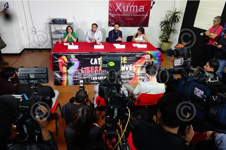 CIUDAD DE MÉXICO, 17AGOSTO2024.- Manuel Guerrero, ciudadano mexicano/británico quien fuera arrestado en Qatar por su orientación sexual el pasado 4 de febrero, regreso a México luego de un tortuoso proceso de liberación en el cuál fue apoyado por la cancillería mexicana. El encuentro se llevó a cabo en las instalaciones del Sindicato Único de Trabajadores de la Industria Nuclear. FOTOS: ROGELIO MORALES/CUARTOSCURO.COM