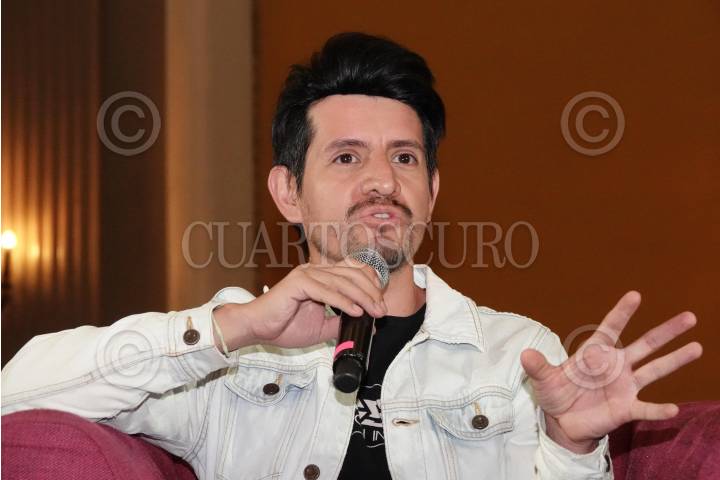 El baterista Manuel Uribe, integrante de la banda Odisseo ofreció una conferencia de prensa en el Teatro Metropolitan