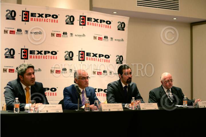MÉXICO, D.F., 14ENERO2016.- En conferencia de prensa presentaron los detalles de la Expo Manufactura 2016, el Ing. Agustín Ríos, David Romero, Lic. José Navarro Meneses y Luciano Diorio. FOTO: ISABEL MATEOS /CUARTOSCURO.COM