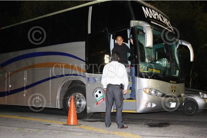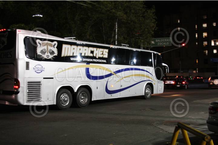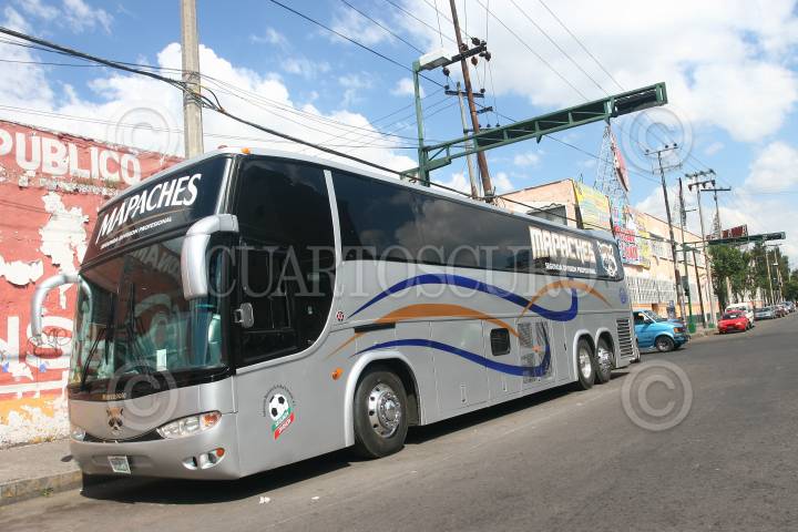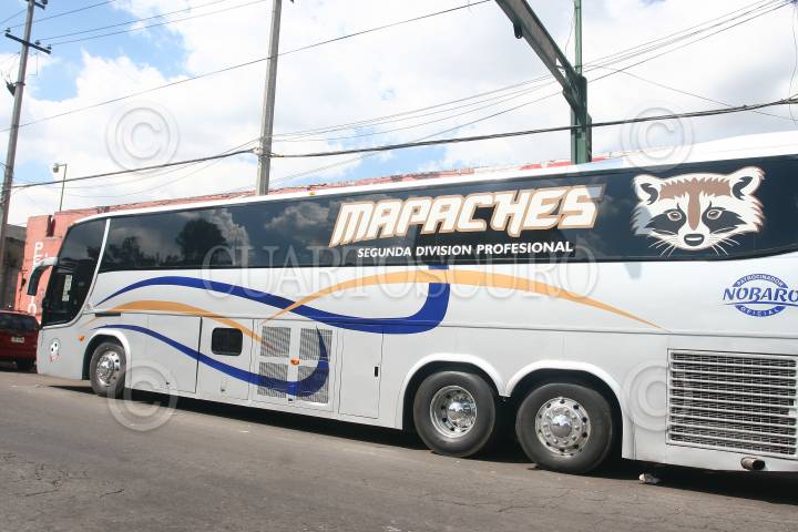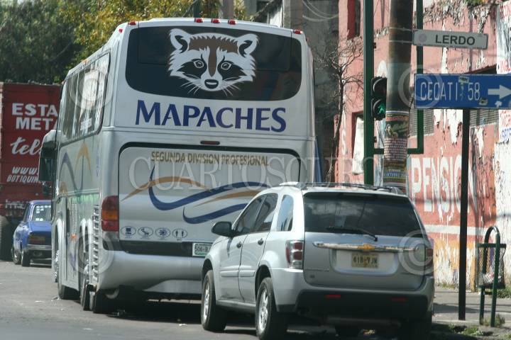 MÉXIOC, D.F., 09OCTUBRE2008.- La noche de ayer, elementos de la Agencia Federal de Investigación (AFI), lograron la detención de dos jugadores del equipo Mapaches-Nueva Italia, equipo de segunda división nacional del estado de Michoacan, cuando jugaban un partido en las instalaciones del América en coapa. En la imágen el autobus perteneciente al equipo, afuera de las instalaciones de la Subprocuraduria de Investigación Especializada en Delincuencia Organizada (SIEDO). FOTO: LUZ ACEVEDO/CUARTOSCURO.COM