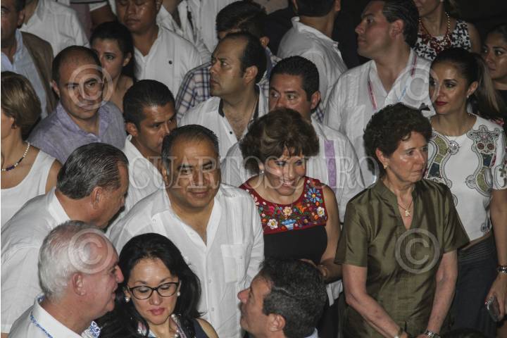ACAPULCO, GUERRERO 26MARZO2017.- Héctor Astudillo Flores, gobernador del Estado de Guerrero, y María Cristina García Cepeda, titular de la Secretaría de Cultura, durante la proyección del Video Mapping del Fuerte de San Diego. FOTO: BERNANDINO HERNÁNDEZ / CUARTOSCURO.COM