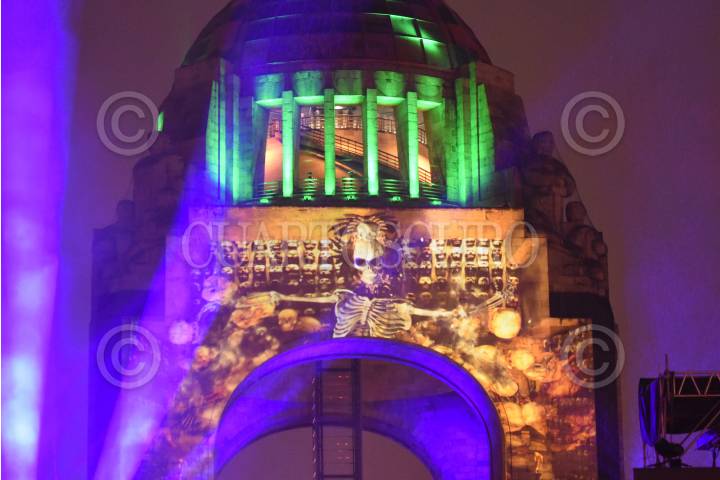 CIUDAD DE MÉXICO, 24OCTUBRE2019.- Cientos de capitalinos pudieron apreciar la proyección de mapping en el Monumento a la Revolución, con motivos del Día del Muertos, entre los personajes que se pudieron apreciar en la protección fue al recién fallecido José José. FOTO: CRISTIAN HERNÁNDEZ /CUARTOSCURO.COM