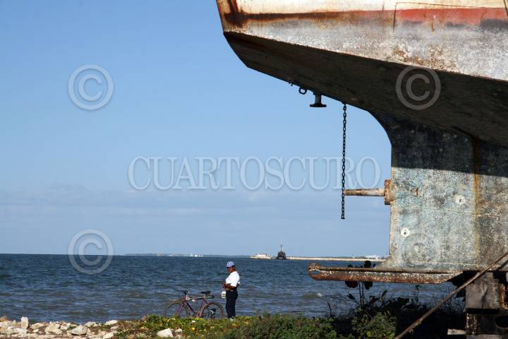 LERMA, CAMPECHE, 21ENERO2009.- Cientos de embarcaciones aun sobreviven sobre las aguas del Golfo de México en lo que llaman los lugareños al "Cementerio de barcos". De igual manera se encontraron embarcaderos que dejaron de funcionar dejando grandes maquinarias con las que construían barcos camaroneros. FOTO: MARCO POLO GUZMÁN HERNÁNDEZ/CUARTOSCURO.COM