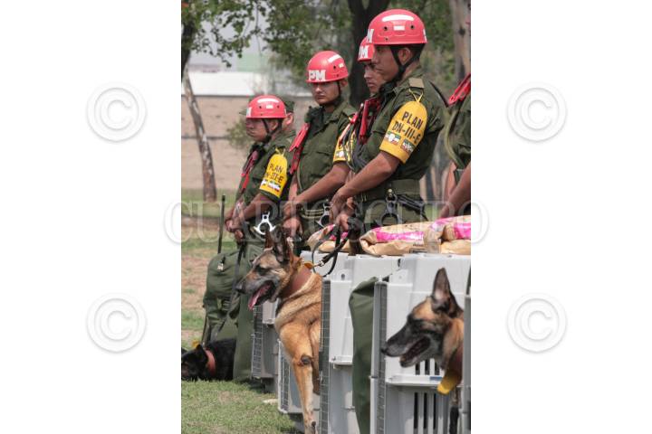 MÉXICO, D.F.25MAYO2007.-El cuerpo de Binomios de busqueda y rescate trabaja en conjunto con el personal y los canes para el rescate de personas atrapadas. FOTO: JEFTÉ ARGUELLO/CUARTOSCURO.COM